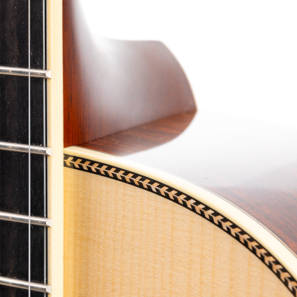 Given the opportunity to hear a truly sophisticated guitar, players experienced a paradigm shift in what they thought possible. This time-tested design ensures large bass response and overall volume. The Pre War design package is presented with understated and elegant appointments to emphasize master grade materials, tone and workmanship. It is perfect for the aficionado that loves the advantages of a professional boutique instrument featuring Indian Rosewood sides and back with Sitka Spruce top, unassuming solid square headstock and a V neck with volute. Under the hood, the Pre War design package honors its pre-WWII predecessors with an advanced X and scalloped top bracing. The OM/PW’s versatility and ergonomics lend great appeal for traditional picking styles and impressive rhythm work. Expect the predominant bass and throaty presence of the surviving pre-war antiques. There are no unnecessary design features on this model, simply the finest materials treated to SCGC’s state of the art lutherie.